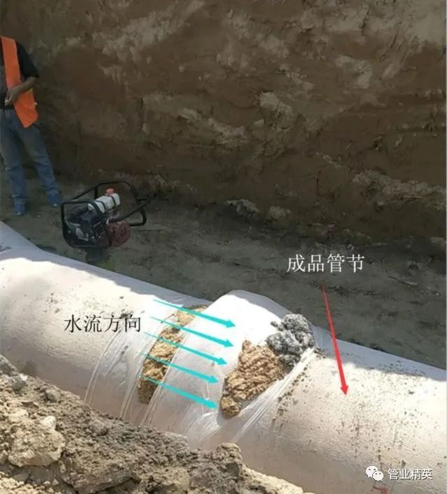 (1)管節(jié)及管件下溝前準(zhǔn)備工作。管節(jié)、管件下溝前,必須對(duì)管節(jié)外觀質(zhì)量進(jìn)行檢查,排除缺陷,以保證接口安裝的密封性