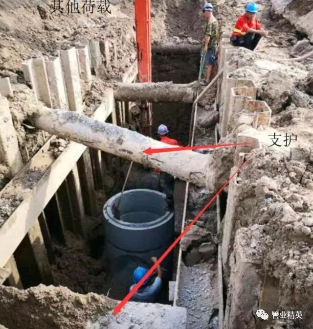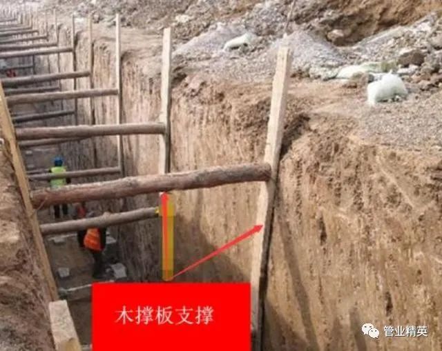 (3)在軟土或其他不穩(wěn)定土層中采用橫排撐板支撐時(shí),開(kāi)始支撐的溝槽開(kāi)挖深度不得超過(guò)1.0m;開(kāi)挖與支撐交替進(jìn)行,每次交替的深度宜為0.4-0.8m。